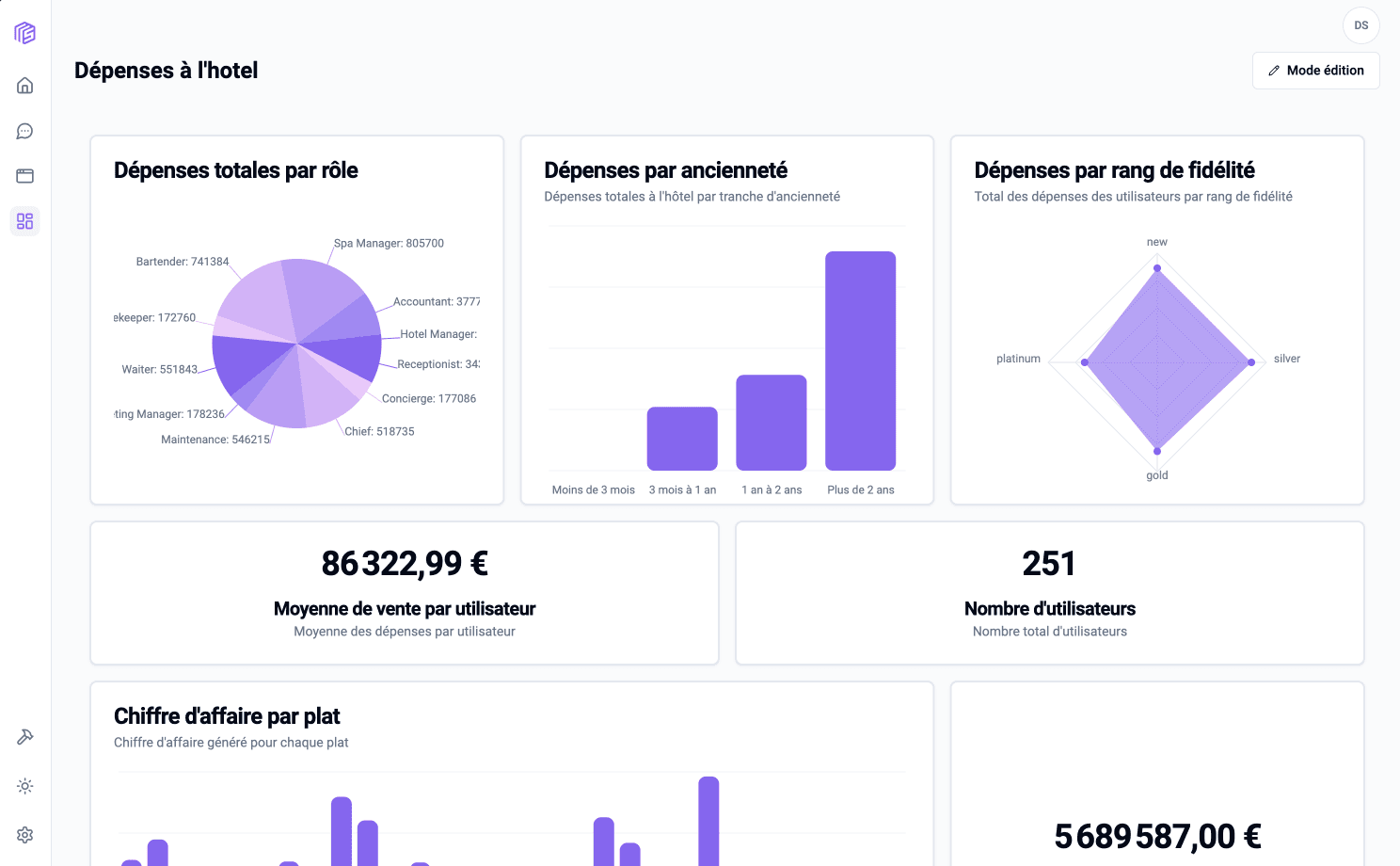 Retrieve, analyze, and build custom dashboards by interacting directly with an intelligent chatbot. Use natural language to explore and manipulate your data.